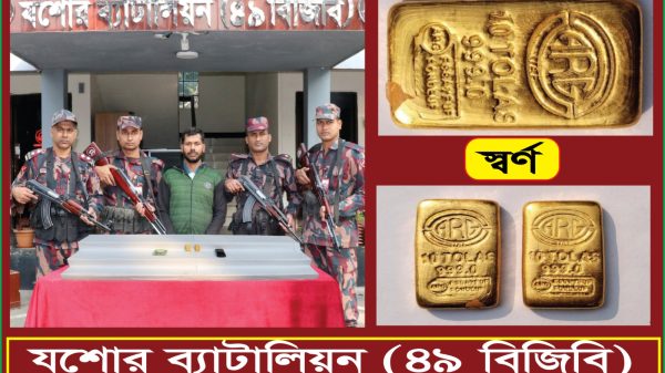 যশোরের পৃথক দুইটি অভিযান পরিচালনা করে ৫.৩৩৪ কেজি ওজনের ৩৬ টি স্বর্ণের বারসহ ০৩ জন আসামী আটক করেছে বিজিবি