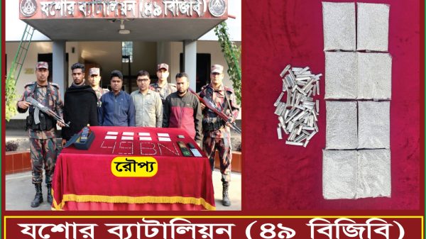 যশোর ব্যাটালিয়ন ৪৯ বিজিবি অভিযান চালিয়ে রুপা ও বিদেশি মদ সহ ৪ জন আসামিক আটক