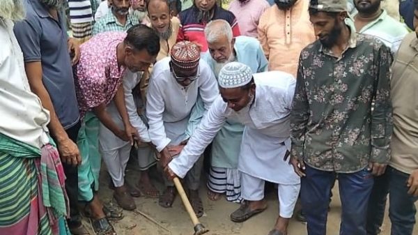 সোনারগাঁয়ে সাদিপুর ইউনিয়নে ইটের সোলিং রাস্তা নির্মাণ কাজের উদ্বোধন
