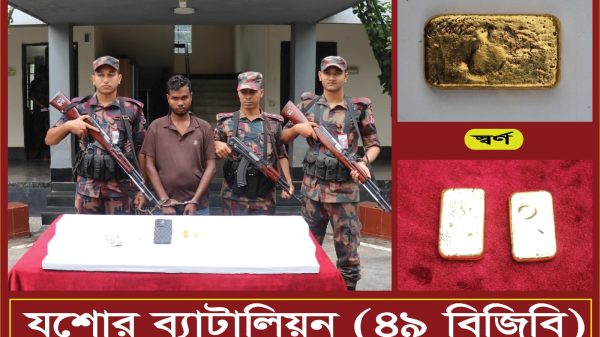 বর্ডার গার্ড বাংলাদেশ যশোর ব্যাটালিয়ন ৪৯ বিজিবি অভিযান চালিয়ে ০২টি স্বর্ণের বারসহ আসামী আটক ১