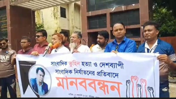 সাংবাদিক নির্যাতন ও হত্যার প্রতিবাদে লক্ষ্মীপুরে মানববন্ধন
