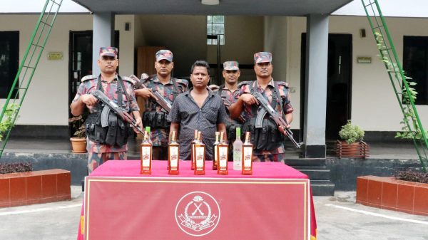 ১০ বোতল বিদেশী মদসহ ০১ জন ভারতীয় নাগরিক আটক করেছে বিজিবি
