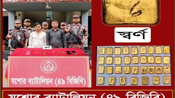 যশোরের পৃথক দুইটি অভিযান পরিচালনা করে ৫.৩৩৪ কেজি ওজনের ৩৬ টি স্বর্ণের বারসহ ০৩ জন আসামী আটক করেছে বিজিবি